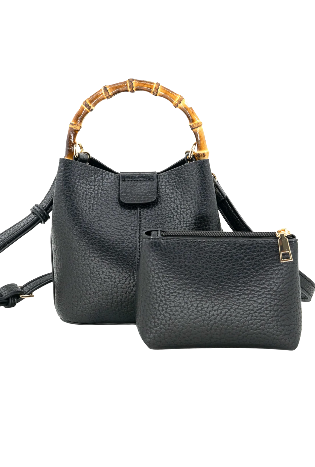 Bamboo Handle Mini Bucket Bag- Black