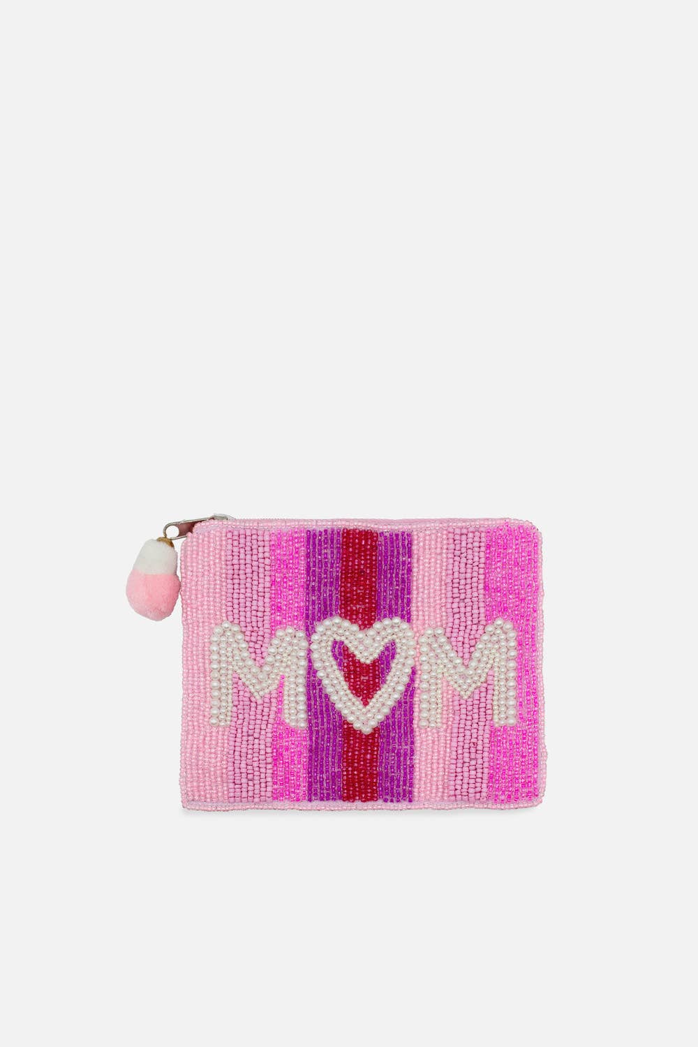 Show Mom some extra love with this sweet and sparkly Pearl Mom Beaded Coin Pouch. This pouch is the perfect gift for Mother’s Day, birthdays, or just because. Perfect for carrying coins, cards, or small keepsakes—this pouch is as functional as it is heartfelt. Key Features: Dimensions: 5.5" x 4.5" Handmade in India 100% Cotton Single-sided beaded design Zipper opening with pom-pom accent