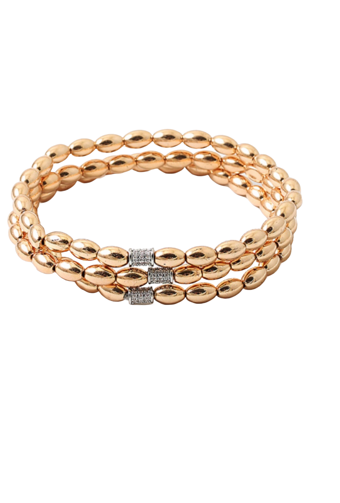 Gold beaded stretch bracelet with cz