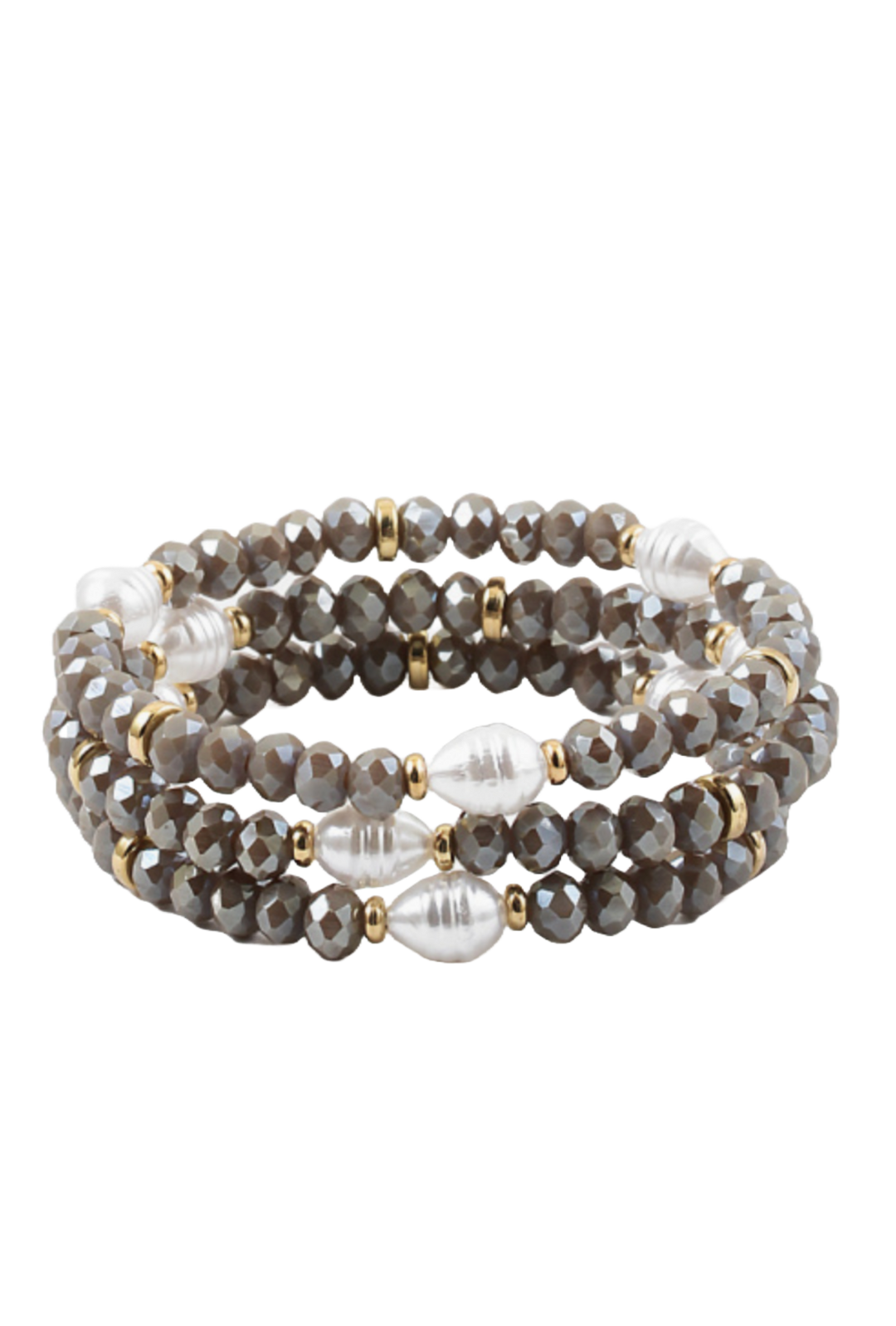 Hematite beaded and pearl stretch bracelet set (set of 3)