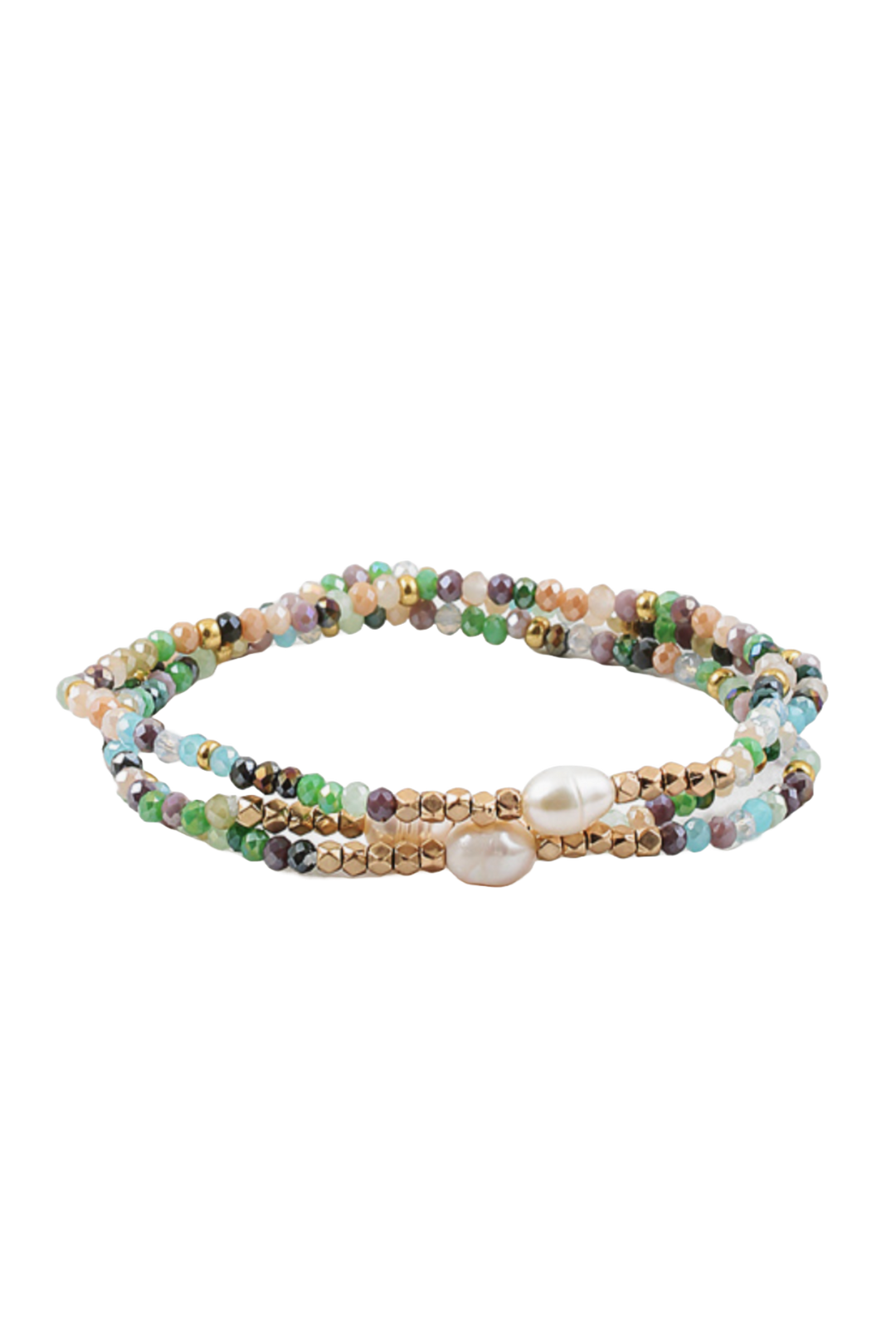 Mint grey and pearl mix stretch bracelet set (set of 3)