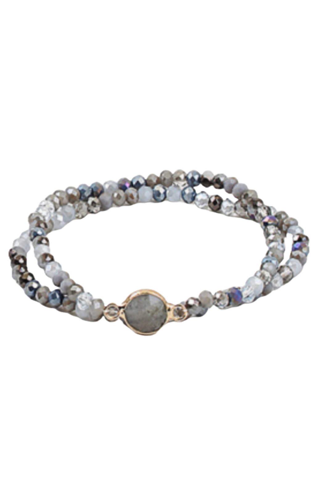 Grey mix crystal and stone stretch bracelets (set of 2)