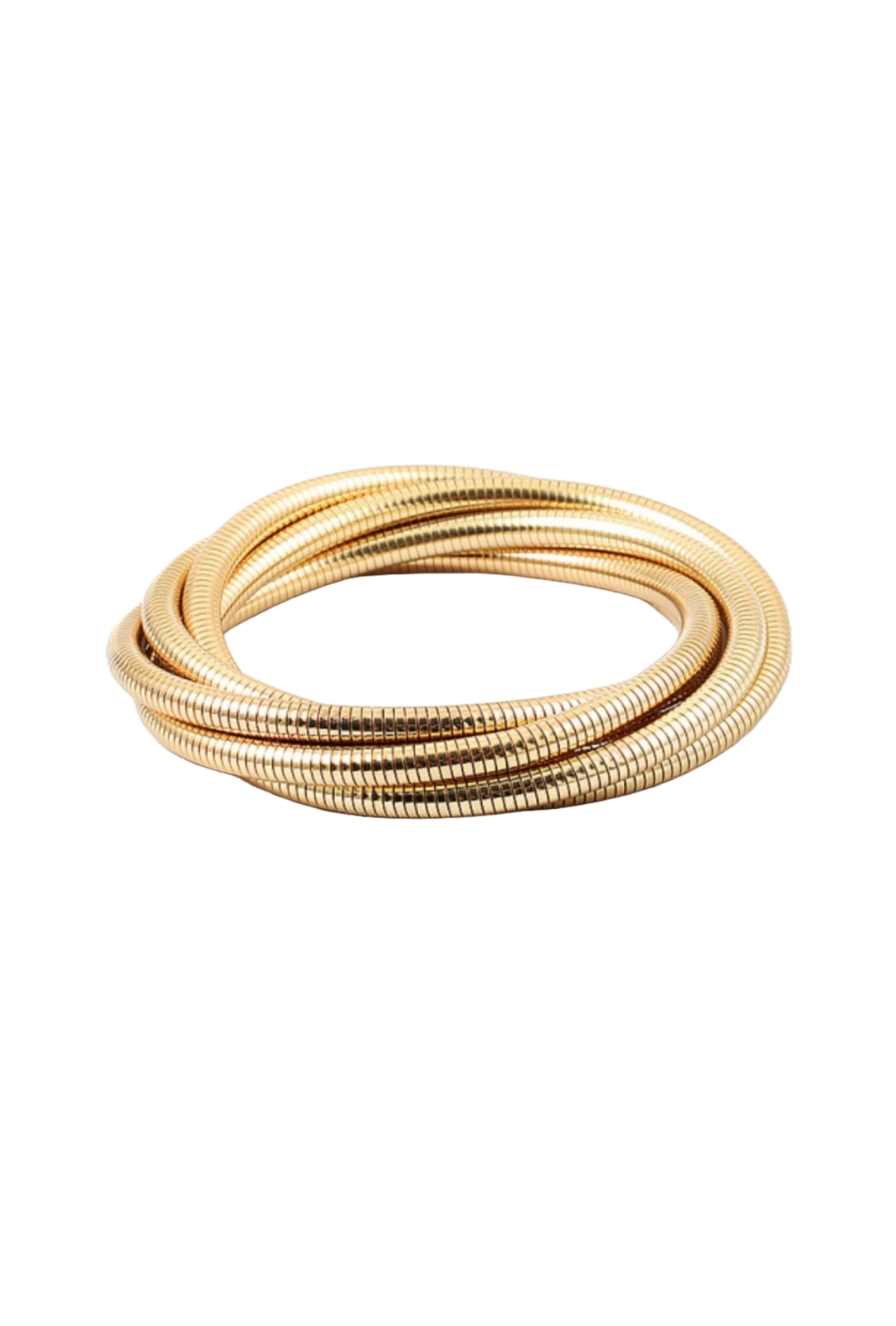 gold cobra chain bracelet stack (bracelets are attached to one another)