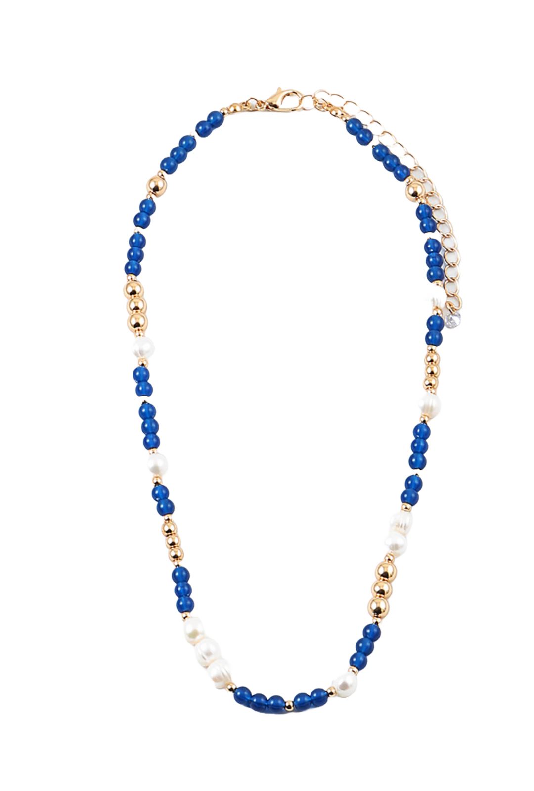 Navy and pearl beaded choker length necklace