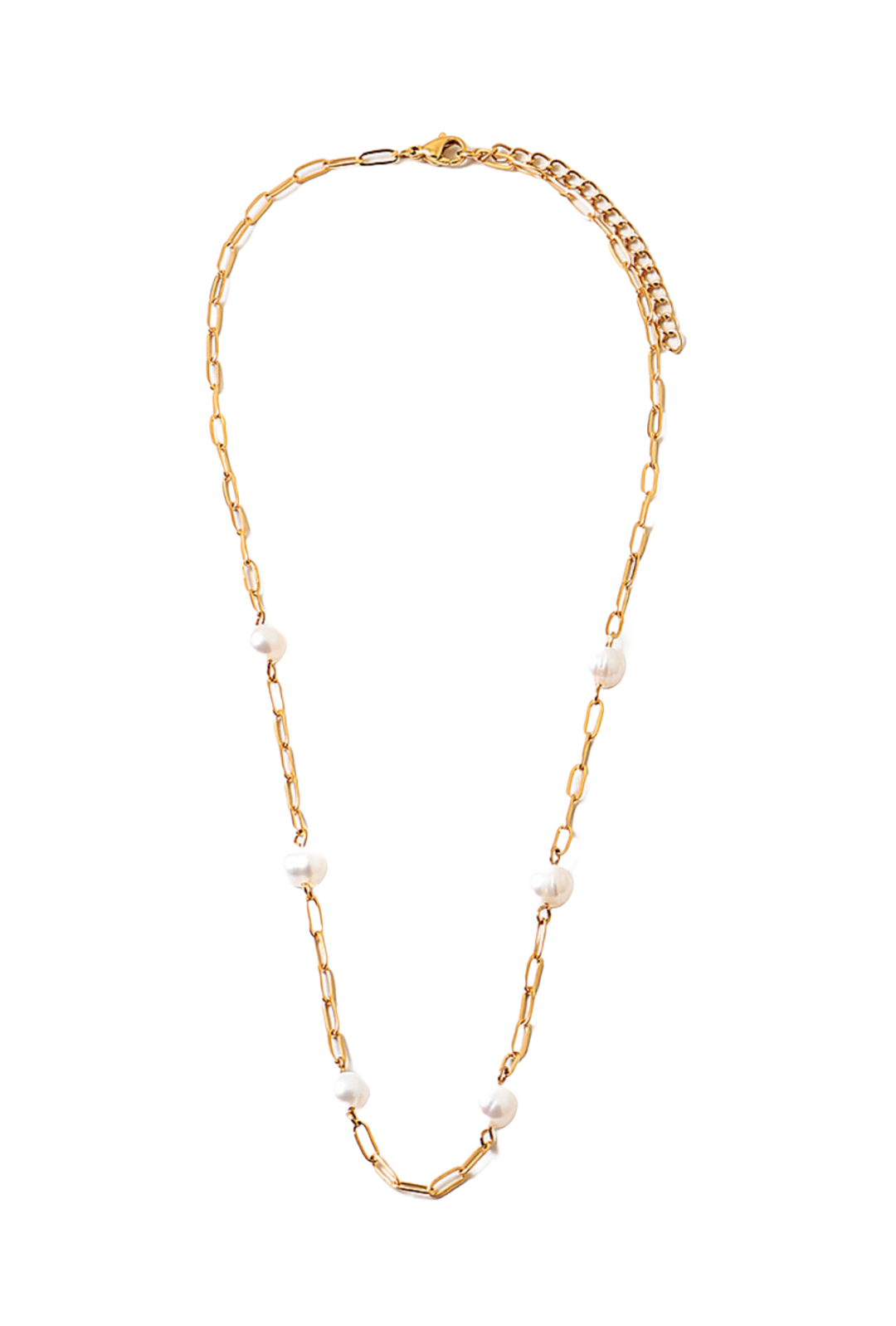 Gold link necklace with pearls