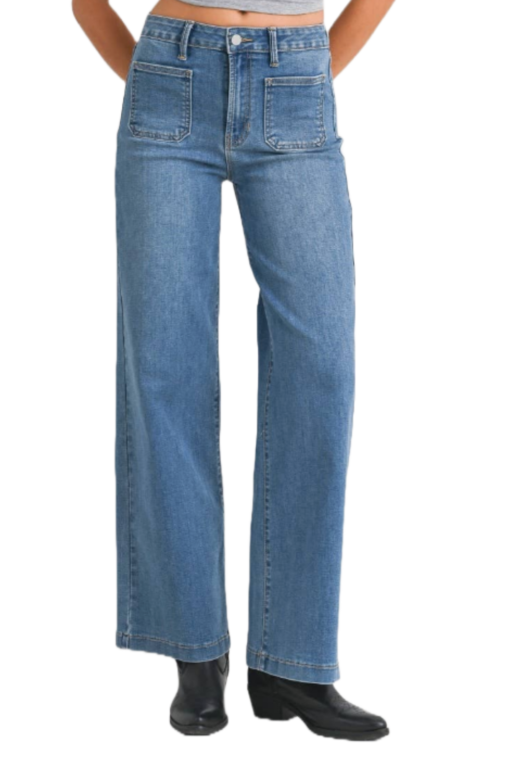 Dark Wash Mini Patch Pocket Wide Leg Jeans