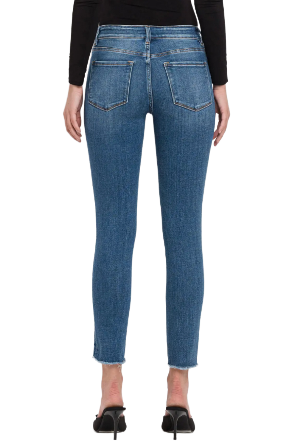 Mid Rise Medium Dark Raw Hem Crop Skinny Jeans