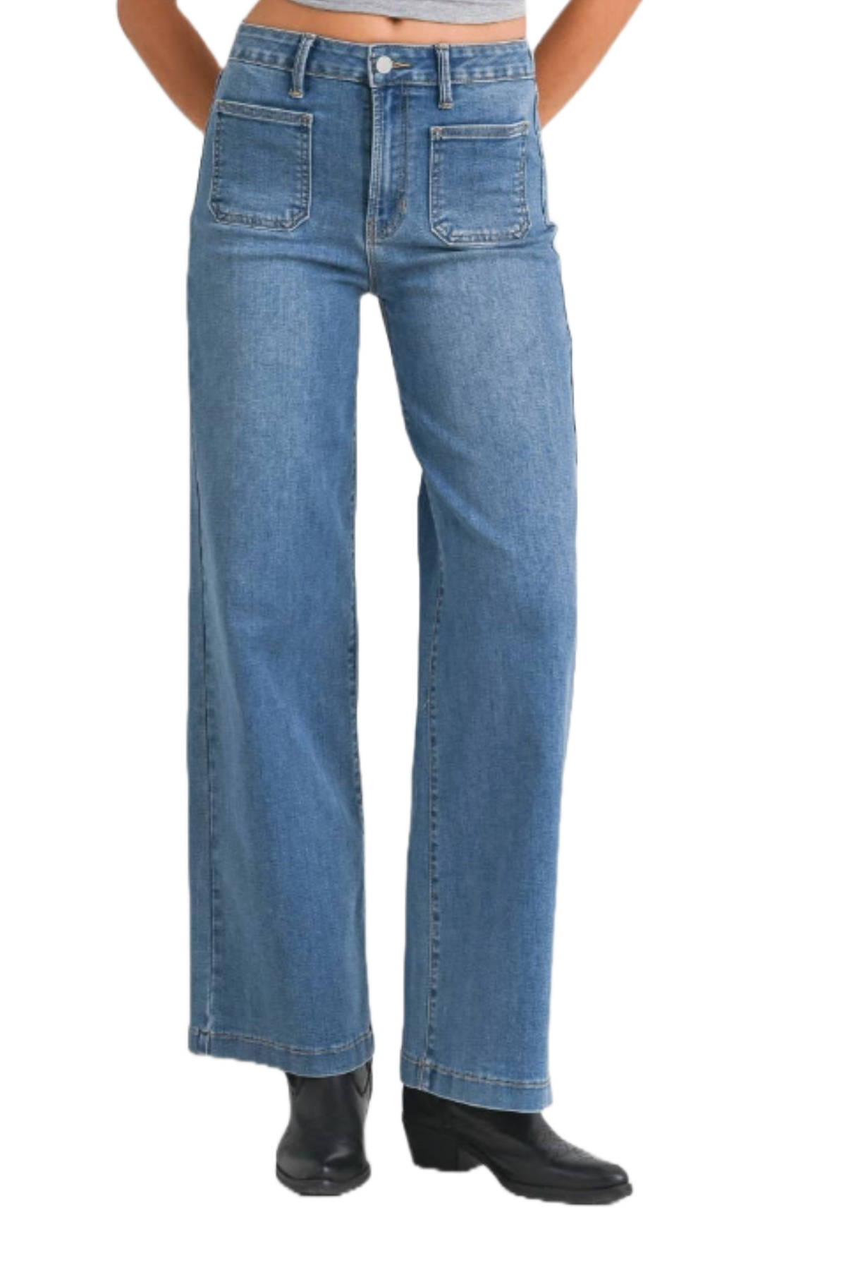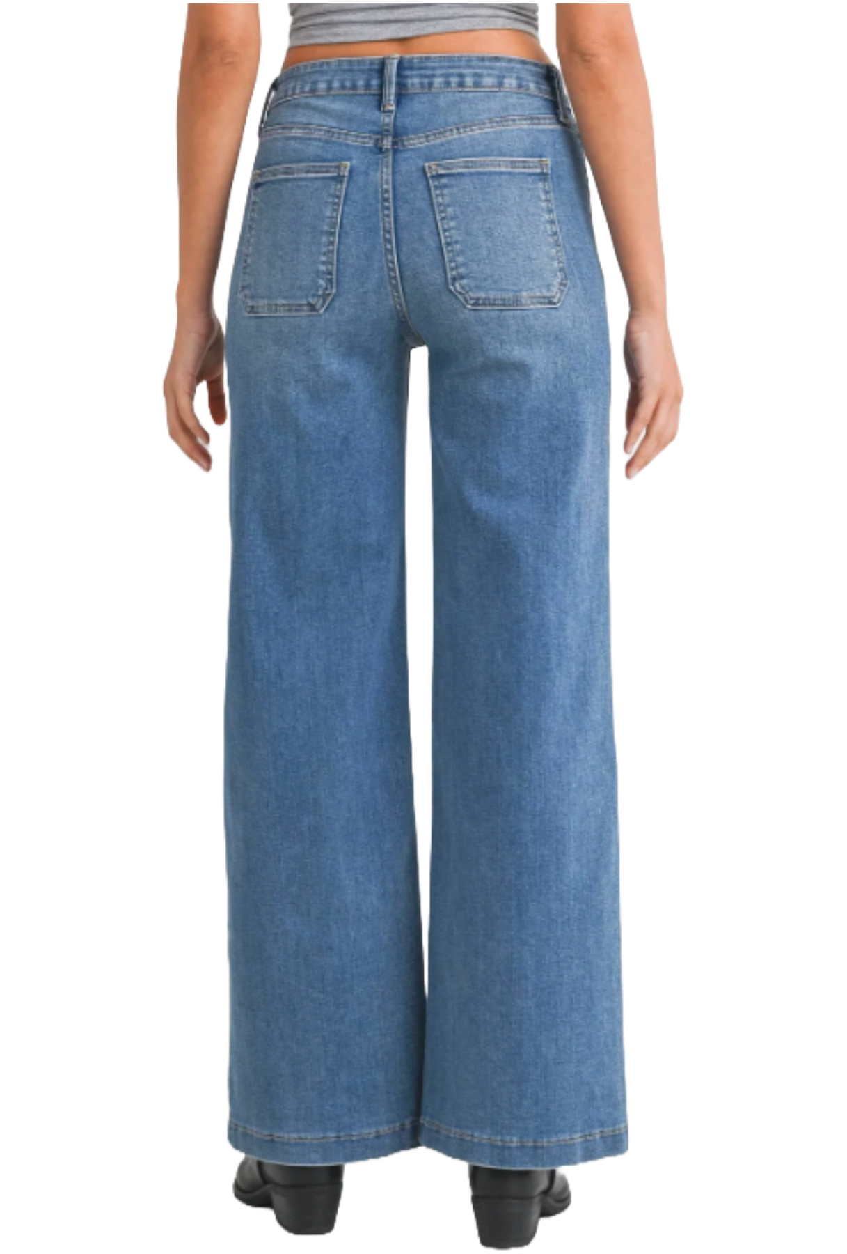 Expertly crafted by JBD- Just Black Denim, these medium wash, high rise, wide leg jeans provide unparalleled comfort with just the right amount of stretch. The clean denim design features no holes or distressing, making them the perfect choice for casual Fridays at the office.