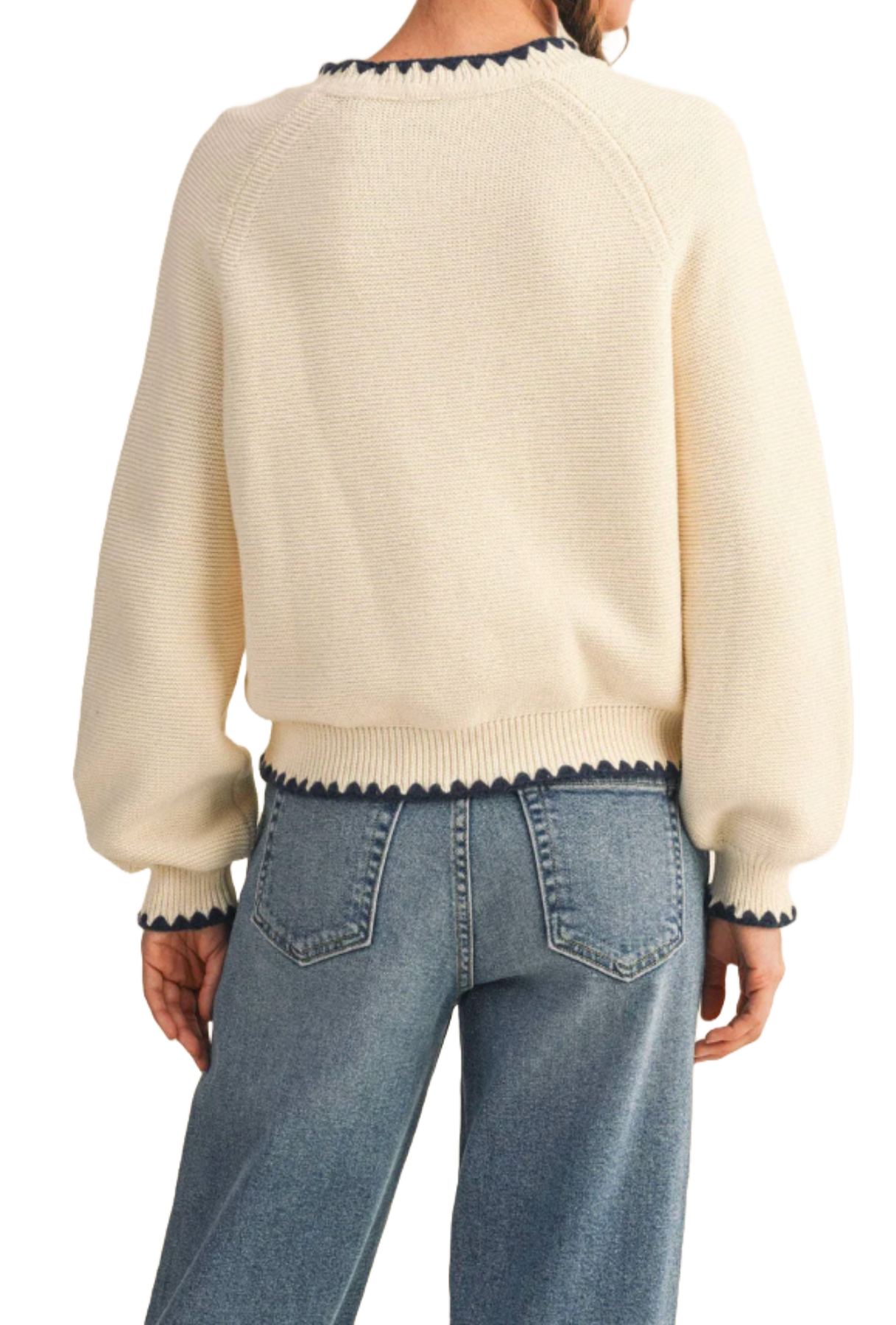 A classic cotton knit sweater designed with a timeless, easy silhouette. Featuring a crew neckline, long sleeves, and subtle contrast trim at the neckline, cuffs, and hem for a polished finish. Soft yet structured, this versatile piece pairs effortlessly with denim for everyday wear.