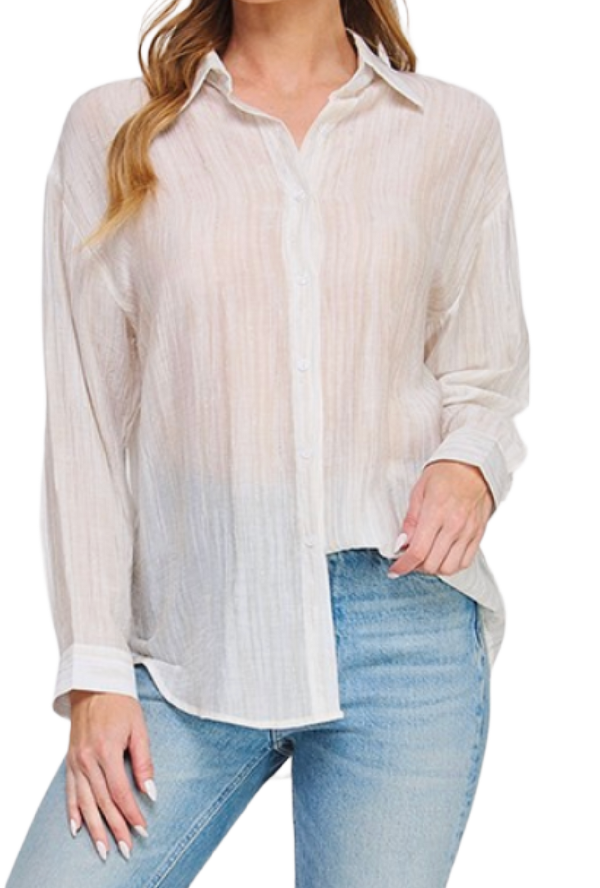 A timeless neutral you’ll wear on repeat, this sand-toned top is designed with an easy, relaxed fit and a soft, textured feel. Lightweight and effortlessly polished, it layers beautifully or stands on its own for a clean, minimal look. Perfect for pairing with denim or trousers for an elevated everyday outfit.