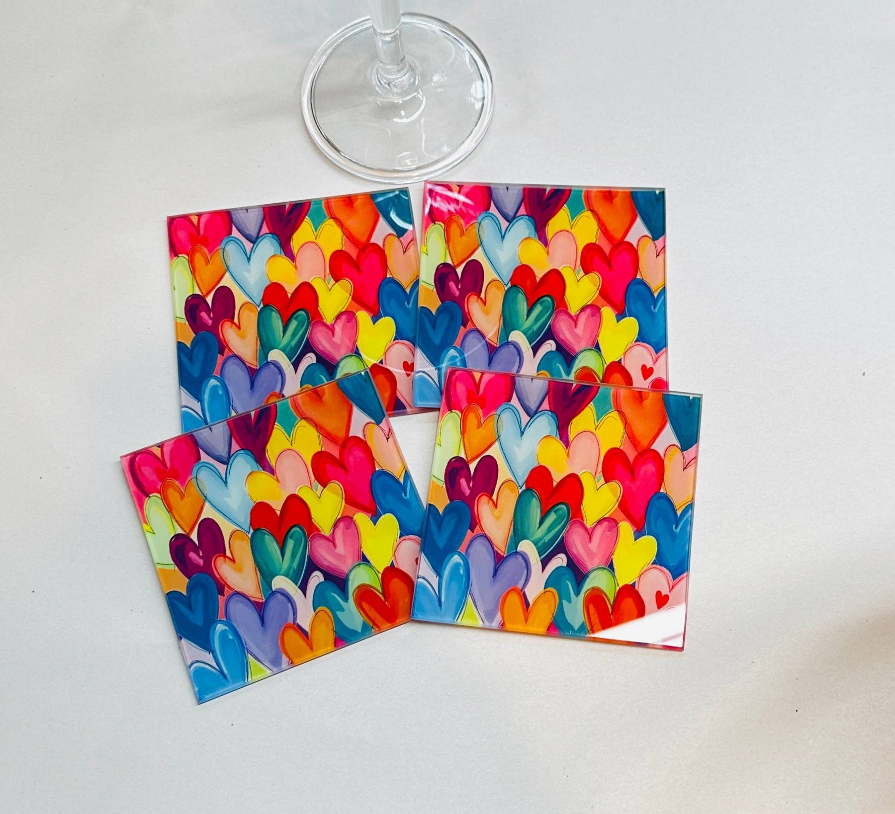 Colorful Hearts Art  Coaster Set