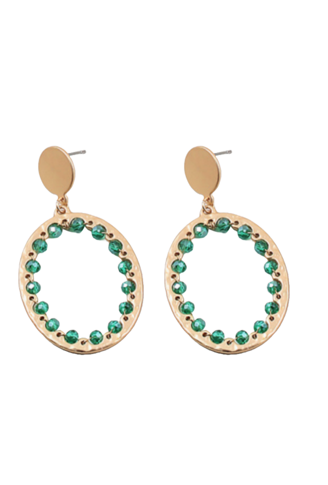 Green crystal beaded matte gold plated drop earrings