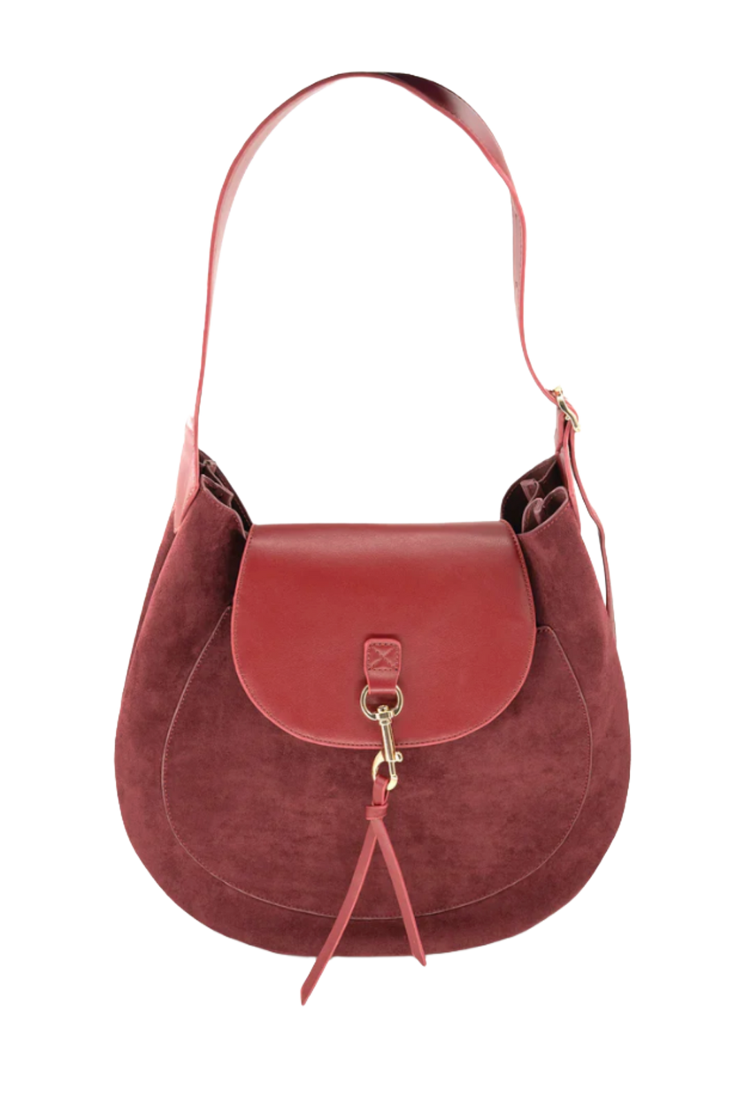 Burgundy vegan suede hand bag with adjustable vegan leather shoulder strap and magnetic closure