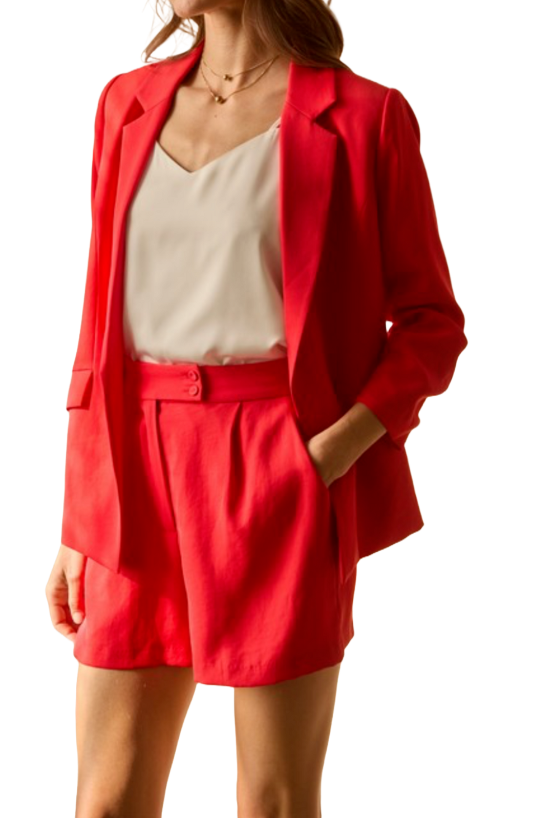 You'll need this blazer in every color. It is simply perfection! Fitted, feminine and soft w 3/4 sleeve detail and shirring. Wear dressy or casual w a pair of jeans and a pump! A fan favorite!