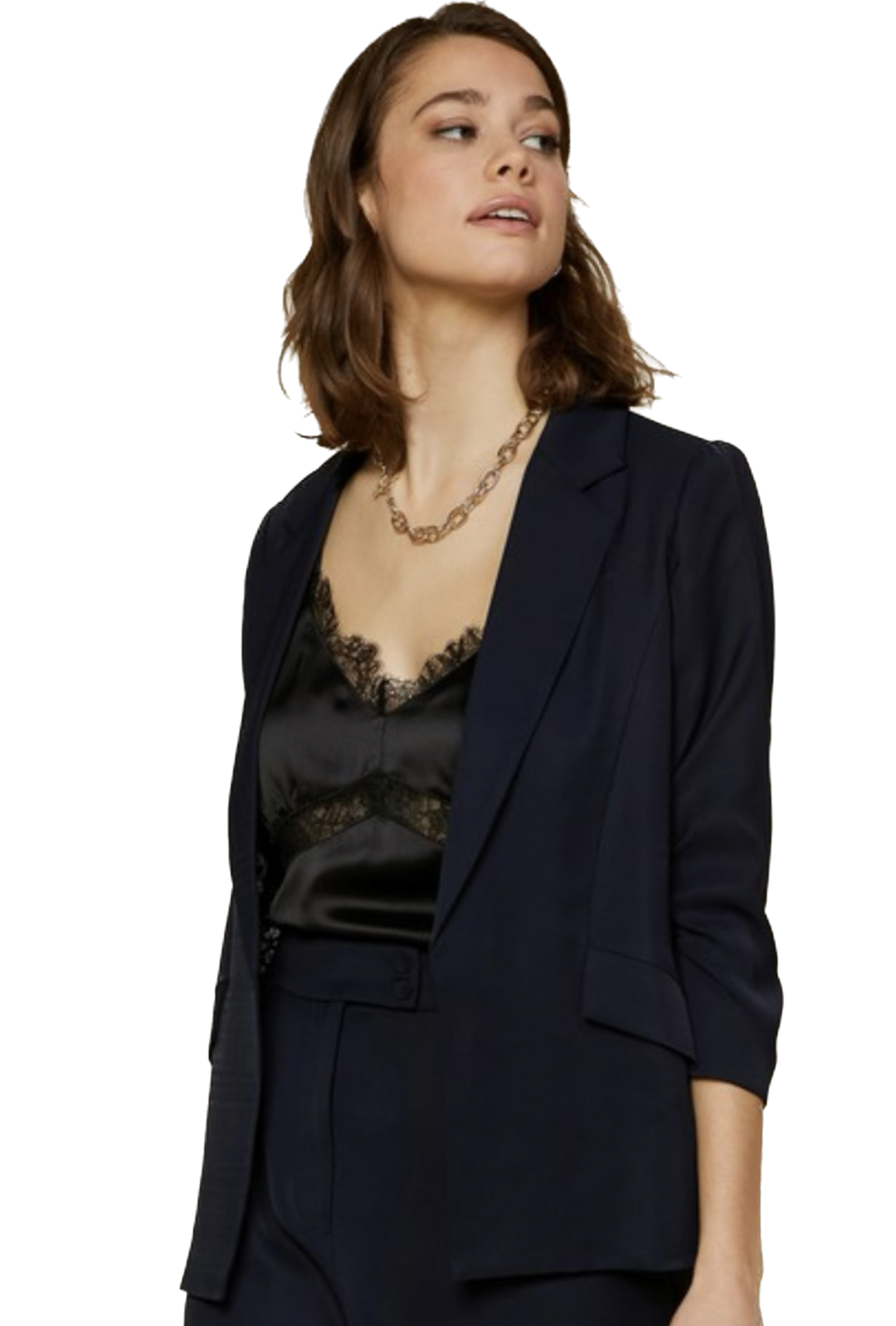 You'll need this blazer in every color. It is simply perfection! Fitted, feminine and soft w 3/4 sleeve detail and shirring. Wear dressy or casual w a pair of jeans and a pump! A fan favorite!