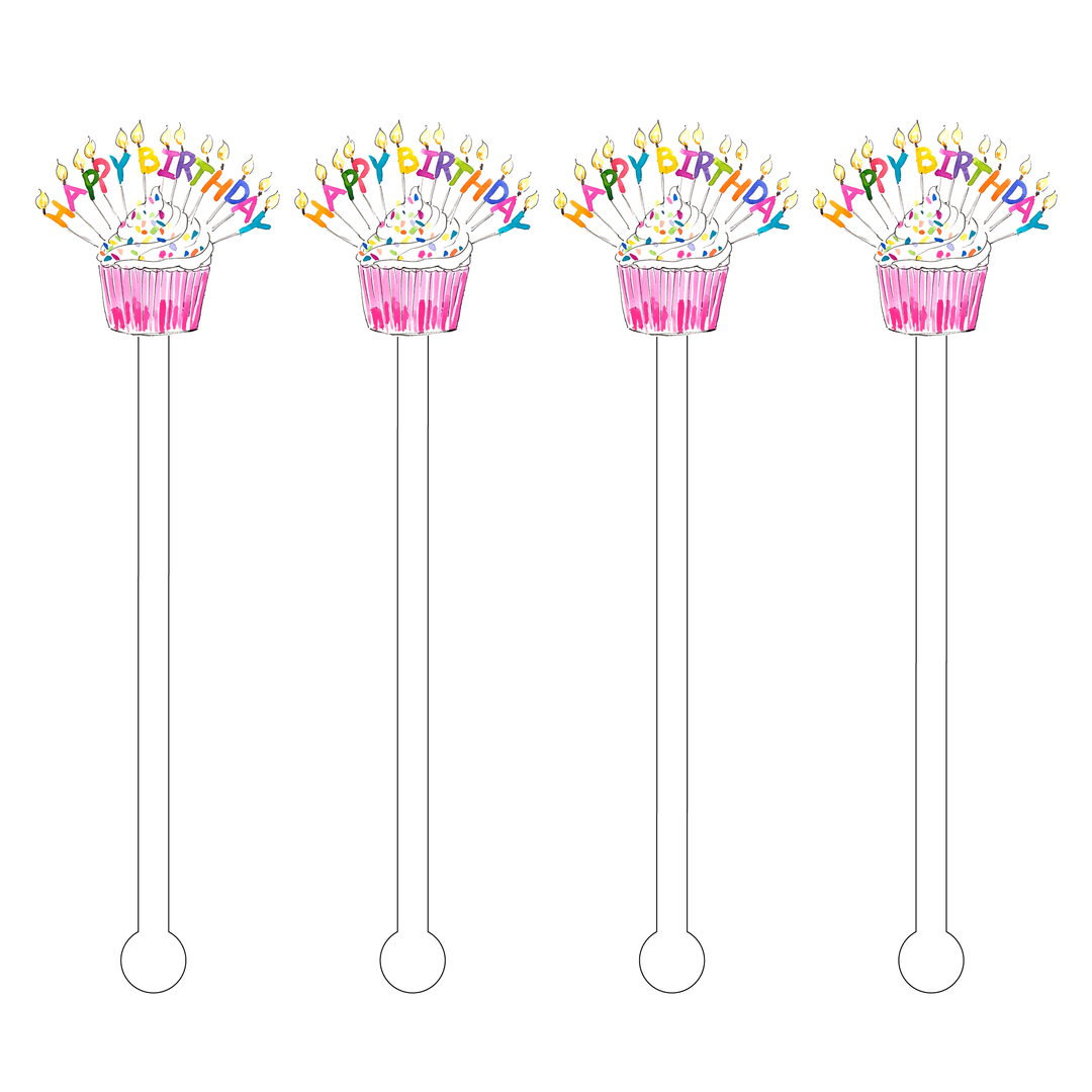 Happy Birthday Sprinkle Cupcake Acrylic Stir Sticks