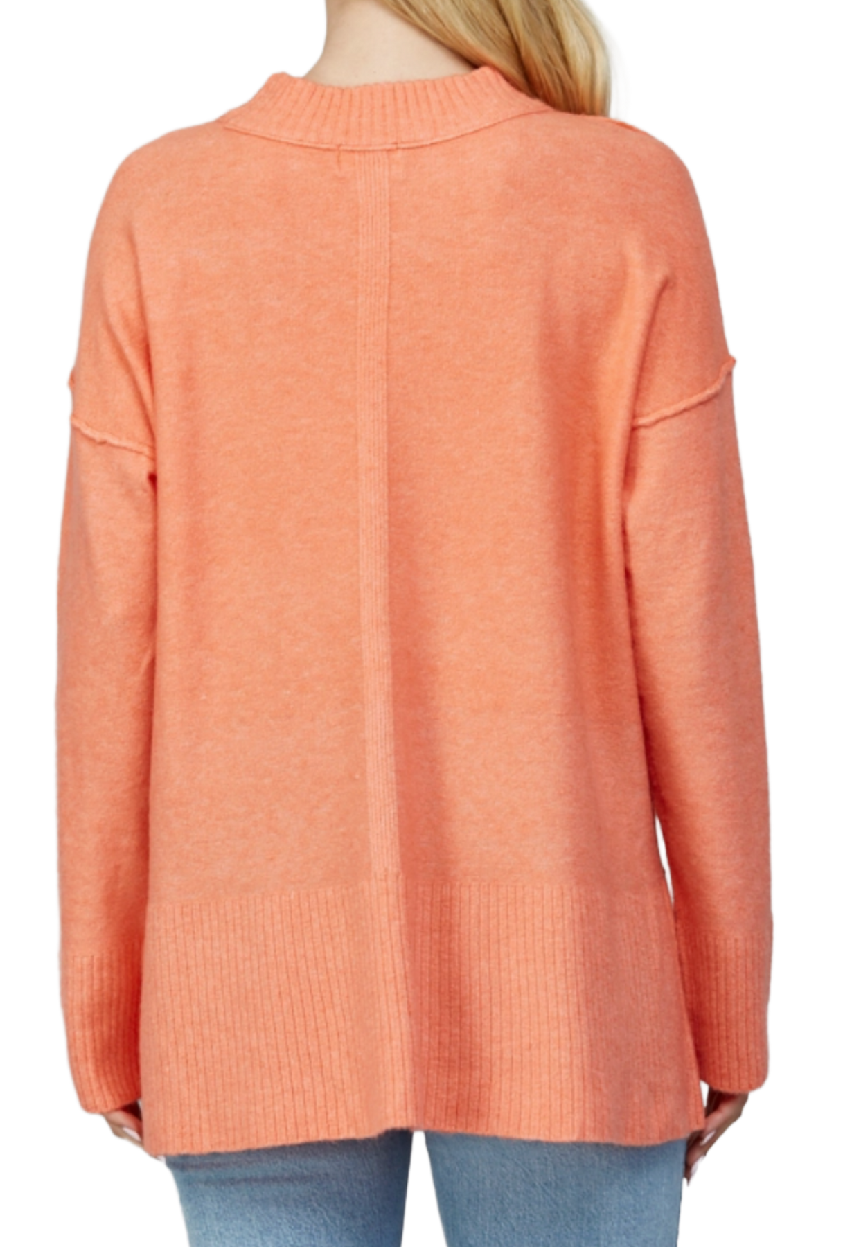 An effortless staple with a soft, cozy feel, this knit sweater features a relaxed silhouette with a classic crew neckline and drop shoulders for an easy, laid-back look. The ribbed trim and subtle side slits add structure, while the longer back hem creates a flattering, comfortable fit. Perfect for pairing with denim or leggings, it’s your go-to for everyday comfort with a polished finish.