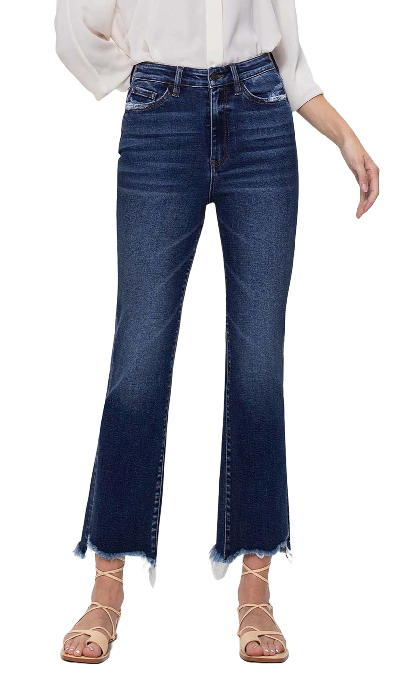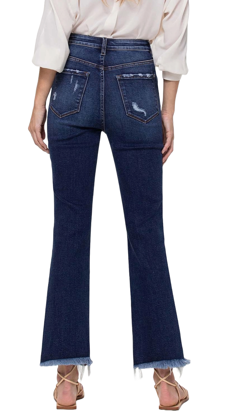 Vervet by Flying Monkey high rise ankle flare jeans with uneven frayed hem